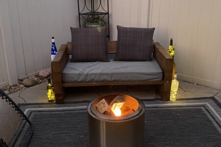 Private patio with a campfire